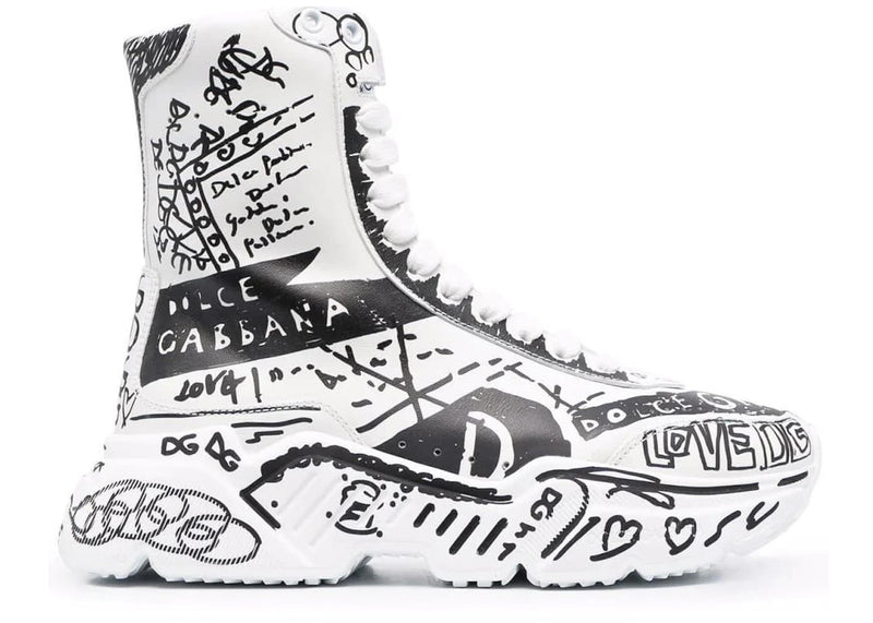 The Dolce & Gabbana Daymaster Mid Top White Black Graffiti (Women's) is now available at Side Kicks!