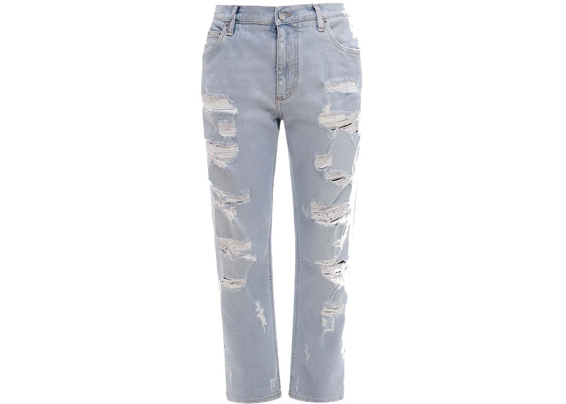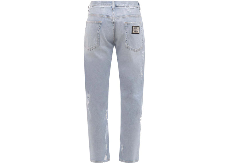 The Dolce & Gabbana Man Stretch Cotton Ripped Effect Jeans Light Wash Blue is now available at Side Kicks!
