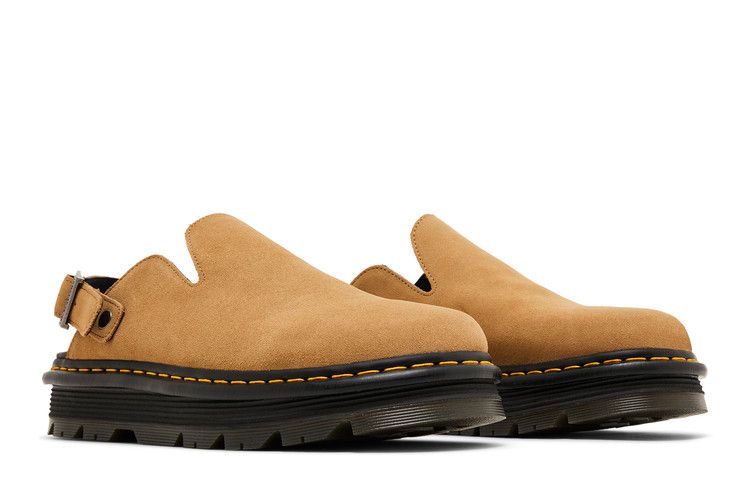 The Dr. Martens Zebzag Suede Slingback Platform Mule Savannah Tan is now available at Side Kicks!