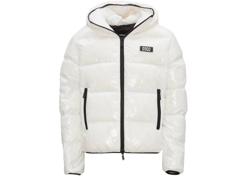 The Dsquared2 Patch Logo Shiny Down Jacket White is now available at Side Kicks!