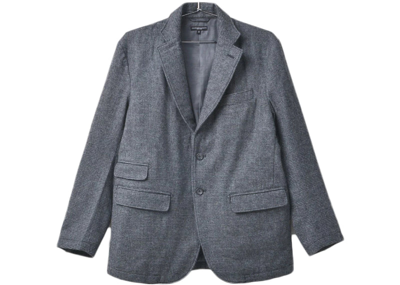 The Engineered Garments Lawrence Plaid Stripe Wool Jacket Grey is now available at Side Kicks!