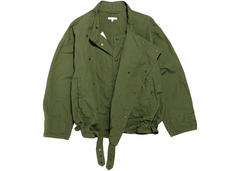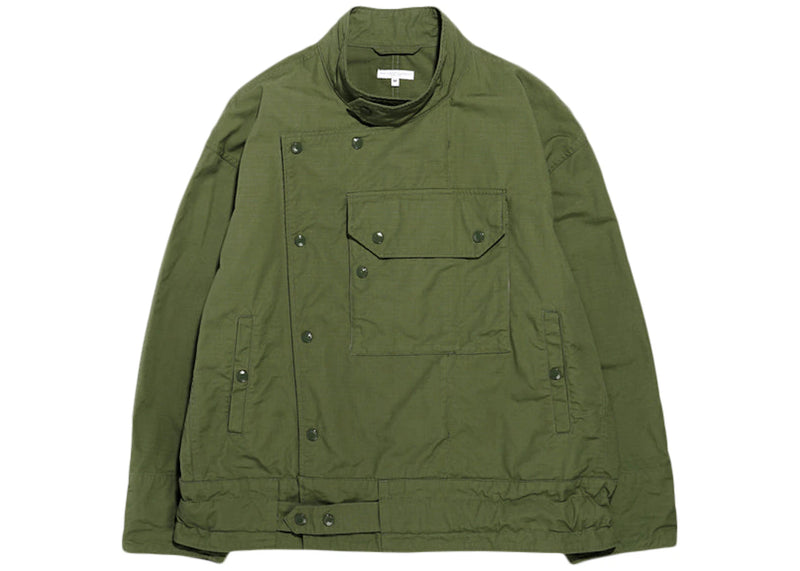 The Engineered Garments Moto Cotton Ripstop Jacket Olive is now available at Side Kicks!
