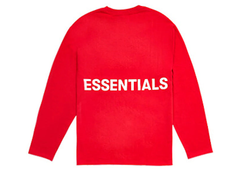 The Fear of God Essentials Boxy Graphic Long Sleeve T-shirt Red is now available at Side Kicks!