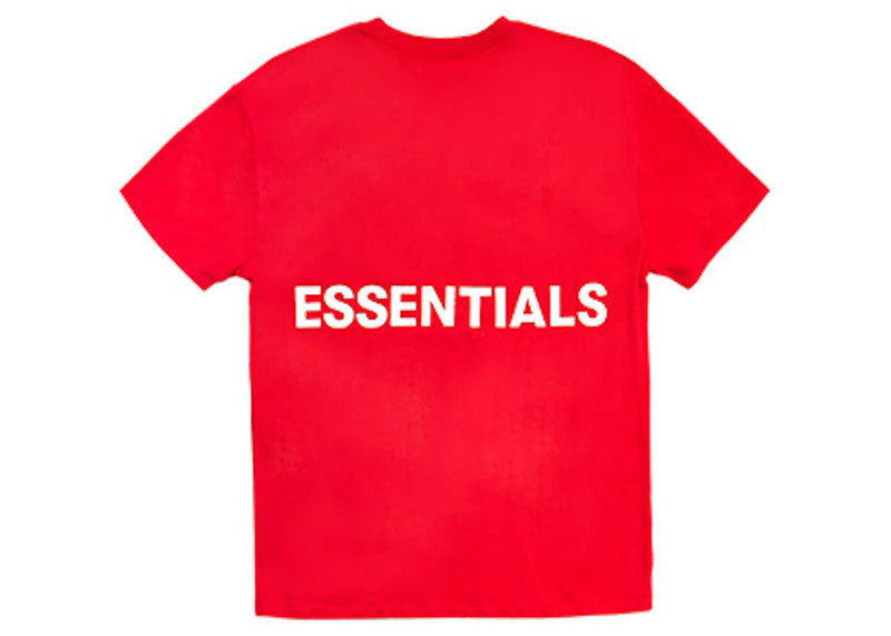 The Fear of God Essentials Boxy Graphic T-shirt Red is now available at Side Kicks!