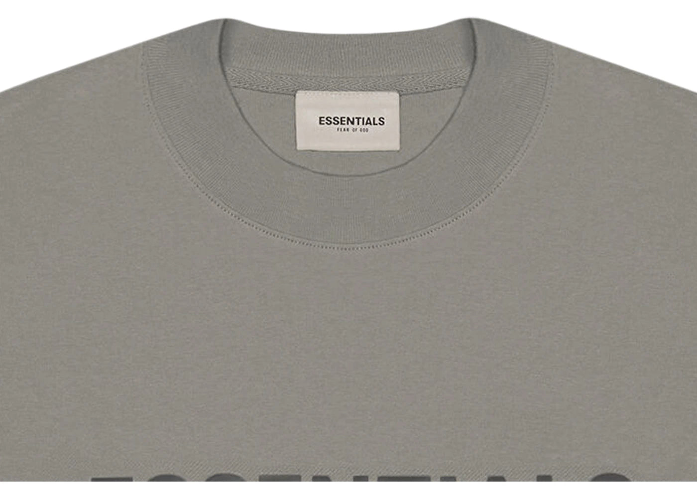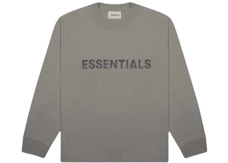 The Fear of God Essentials Boxy Long Sleeve T-Shirt Applique Logo Gray Flannel/Charcoal is now available at Side Kicks!