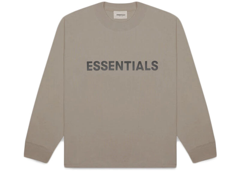 The Fear of God Essentials Boxy Long Sleeve T-Shirt Applique Logo Taupe is now available at Side Kicks!