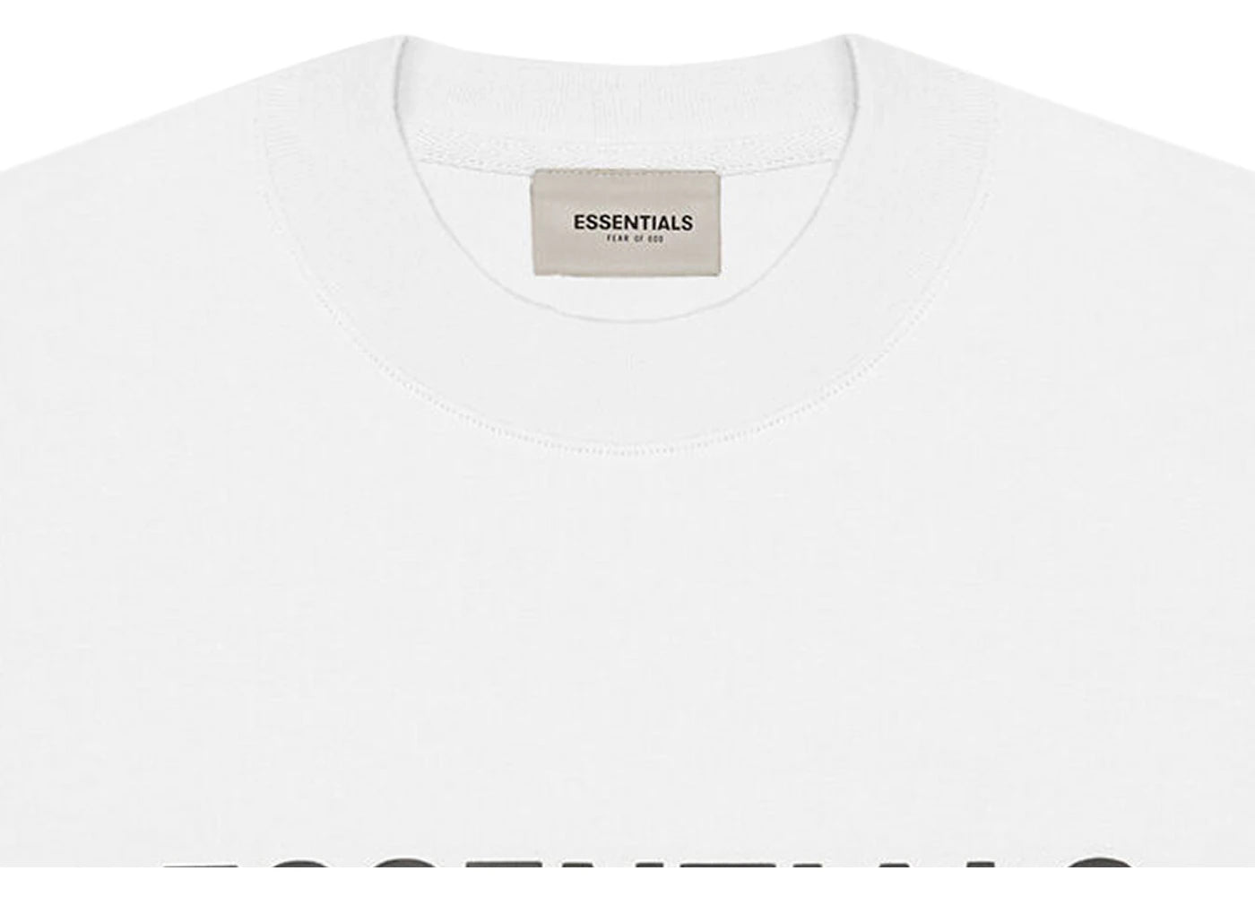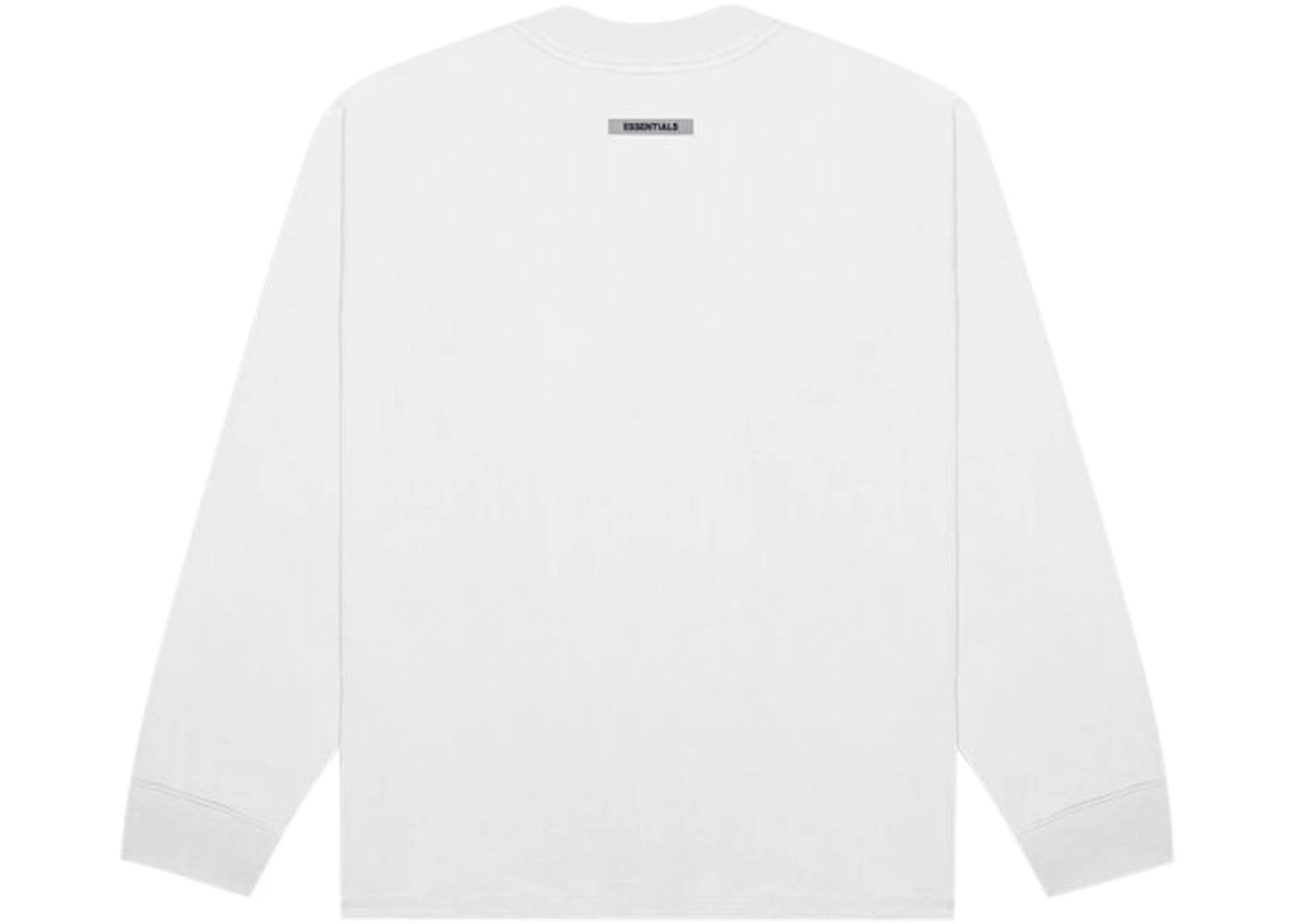 The Fear of God Essentials Boxy Long Sleeve T-Shirt Applique Logo White is now available at Side Kicks!