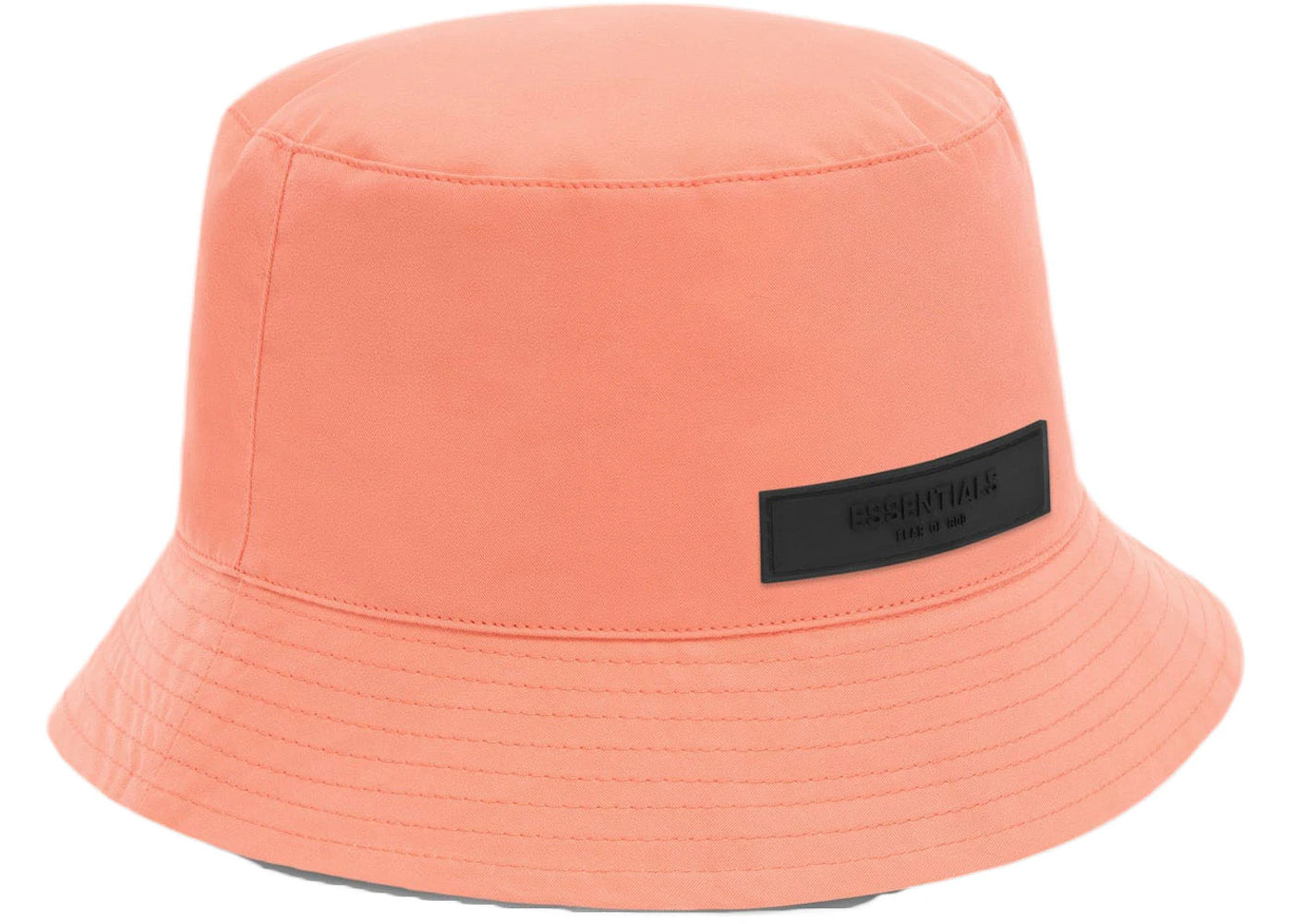 The Fear of God Essentials Bucket Hat Coral is now available at Side Kicks!