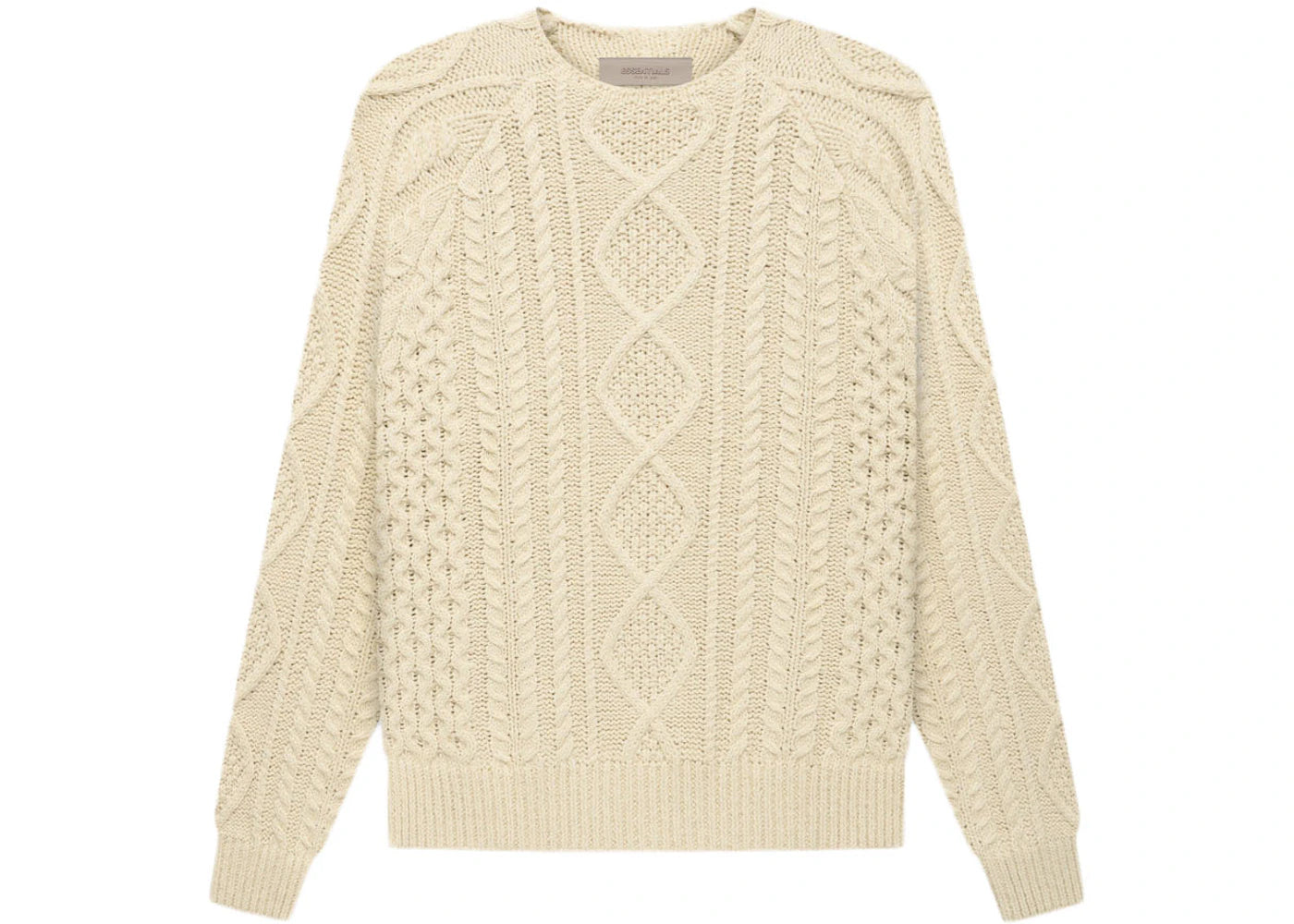 The Fear of God Essentials Cable Knit Egg Shell is now available at Side Kicks!