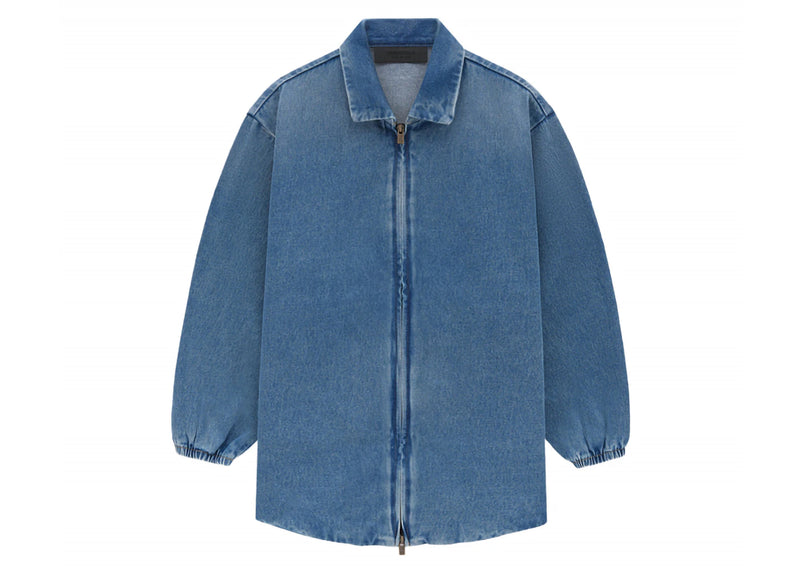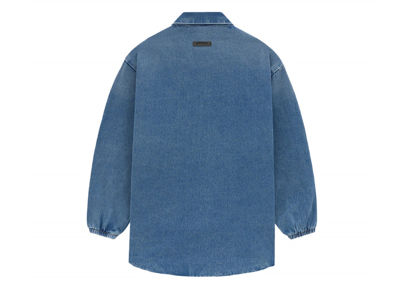 The Fear of God Essentials Core Collection Kids Denim Overshirt Medium Wash is now available at Side Kicks!