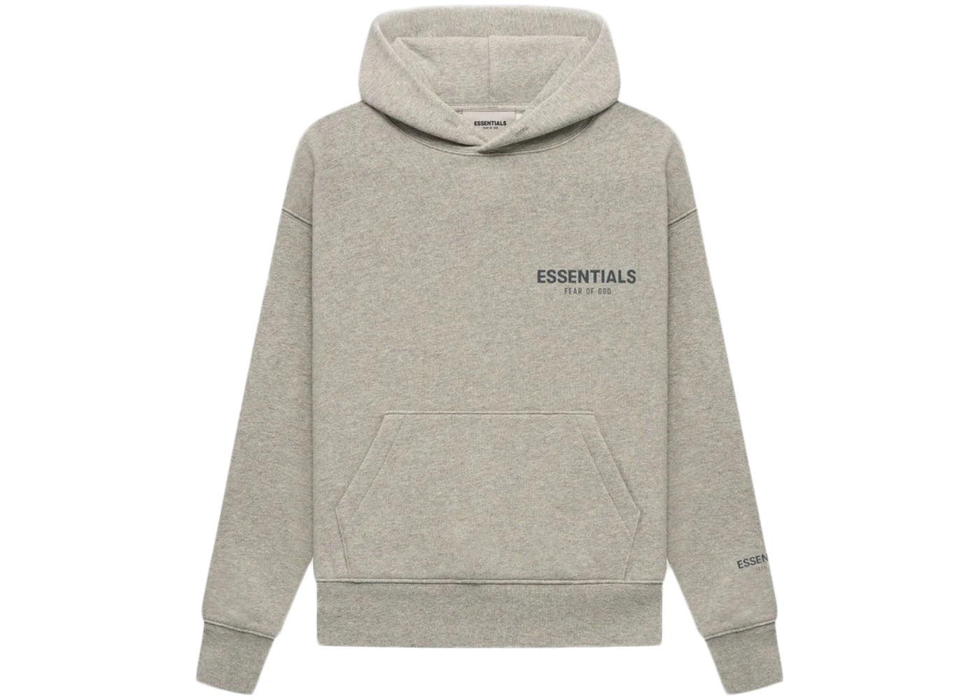 The Fear of God Essentials Core Collection Kids Pullover Hoodie Dark Heather Oatmeal is now available at Side Kicks!
