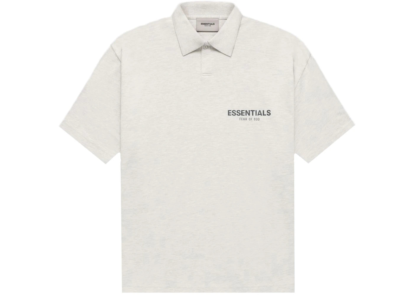 The Fear of God Essentials Core Collection Polo Light Heather Oatmeal is now available at Side Kicks!