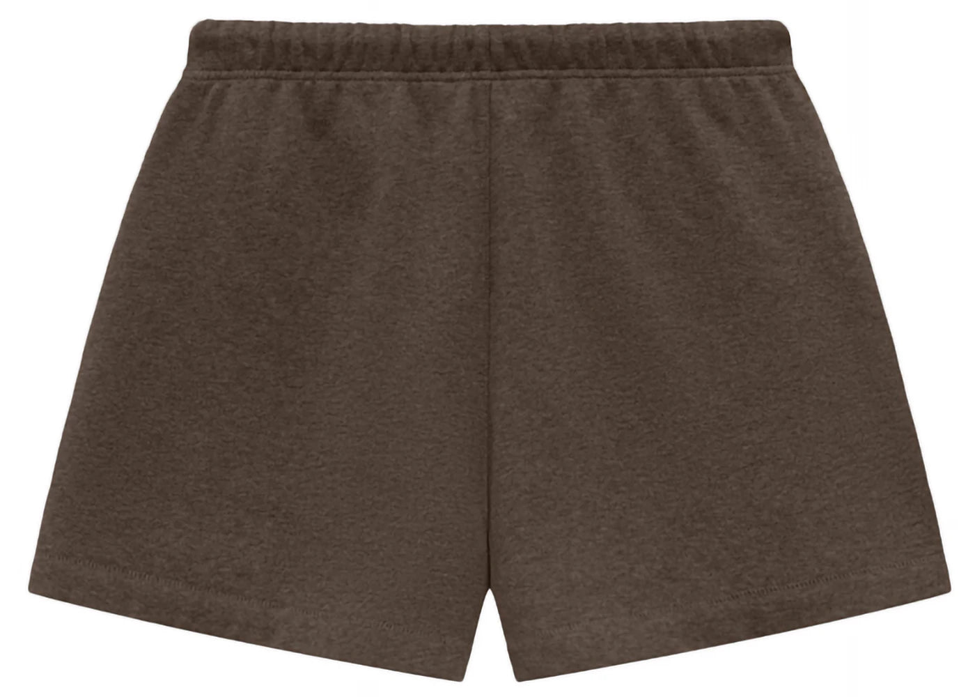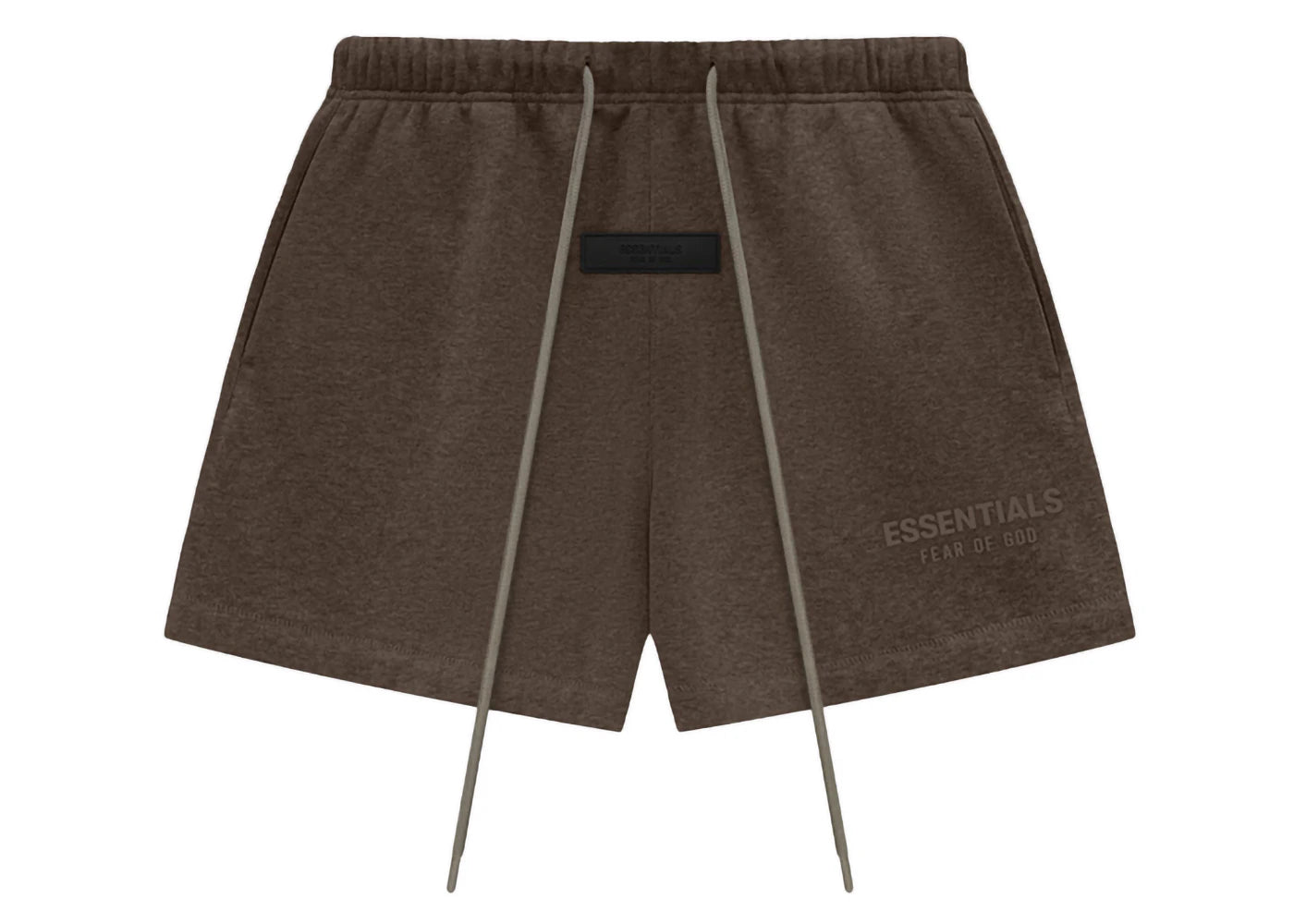 The Fear of God Essentials Core Collection Sweatshort Heather Wood is now available at Side Kicks!