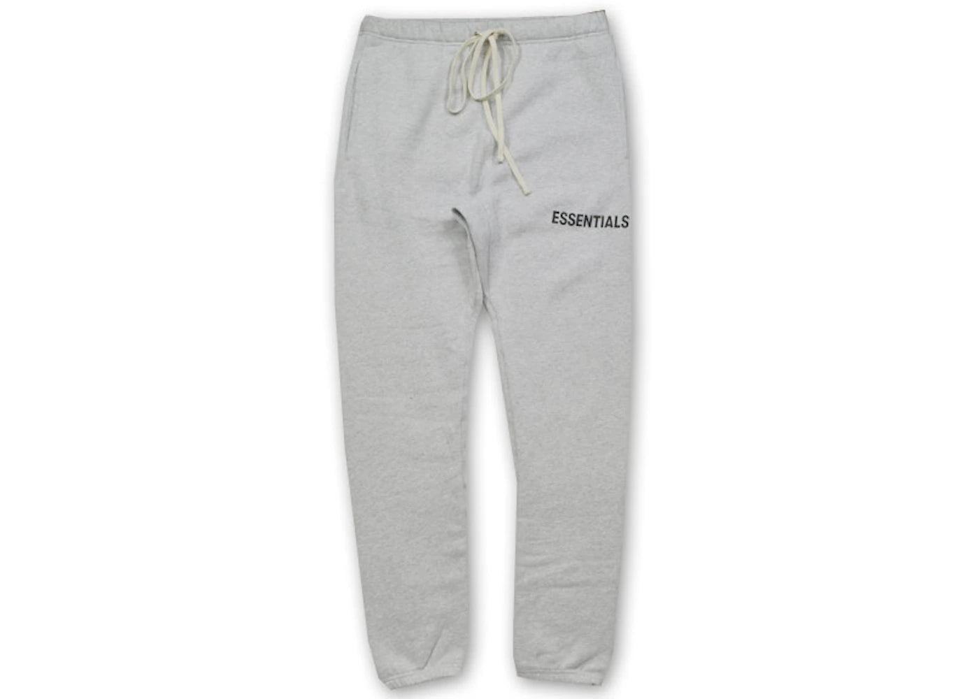 The Fear of God Essentials Graphic Sweatpants Grey White features a relaxed fit with an elastic waistband and drawstring for adjustability. Made from a soft cotton blend, the sweatpants include a bold white Essentials graphic printed on the left leg. The grey and white colorway offers versatility for casual wear. Released on September 5, 2018, the Fear of God Essentials Graphic Sweatpants Grey White is available now at Side Kicks.