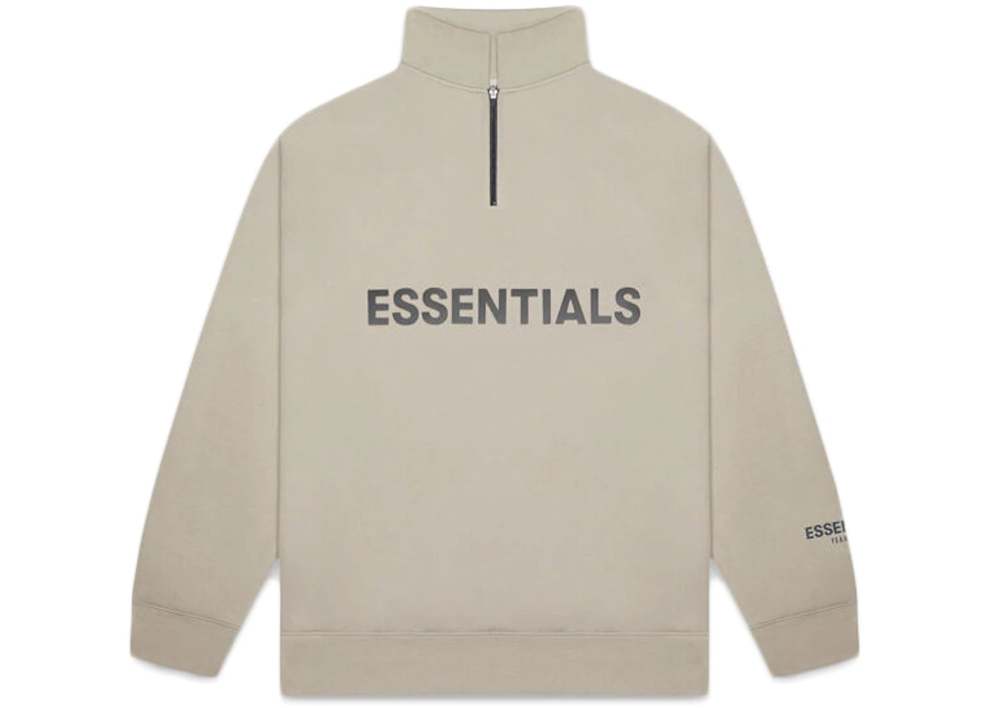The Fear of God Essentials Half Zip Pullover Sweater Olive/Khaki is now available at Side Kicks!