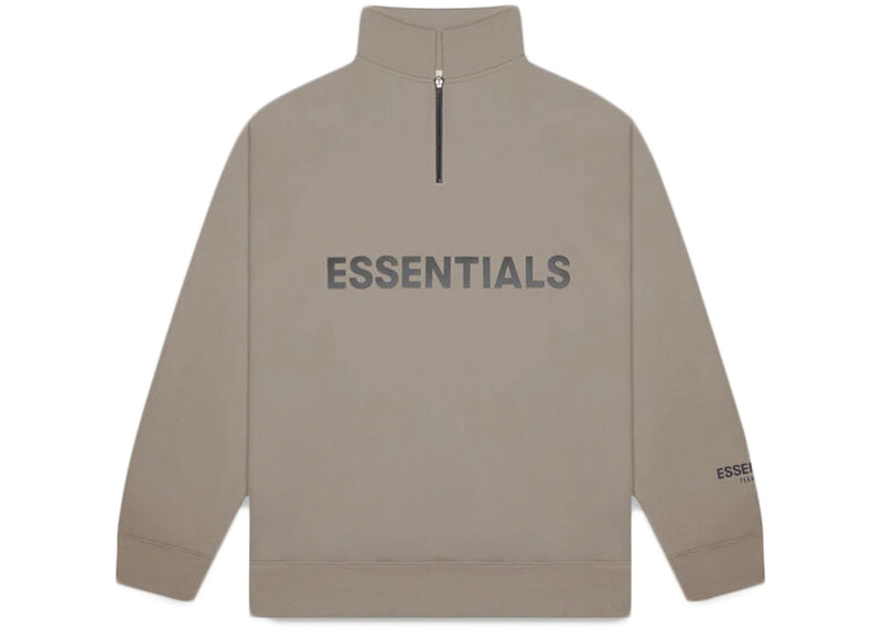 The Fear of God Essentials Half Zip Pullover Sweater Taupe is now available at Side Kicks!
