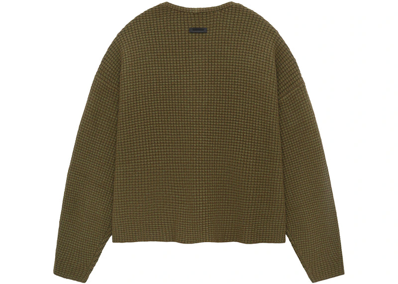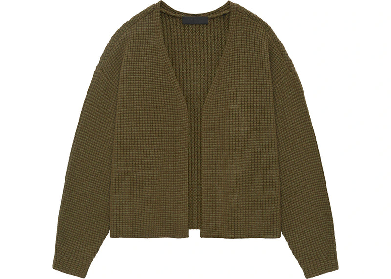 The Fear of God Essentials Heavy Waffle Cardigan Olive is now available at Side Kicks!
