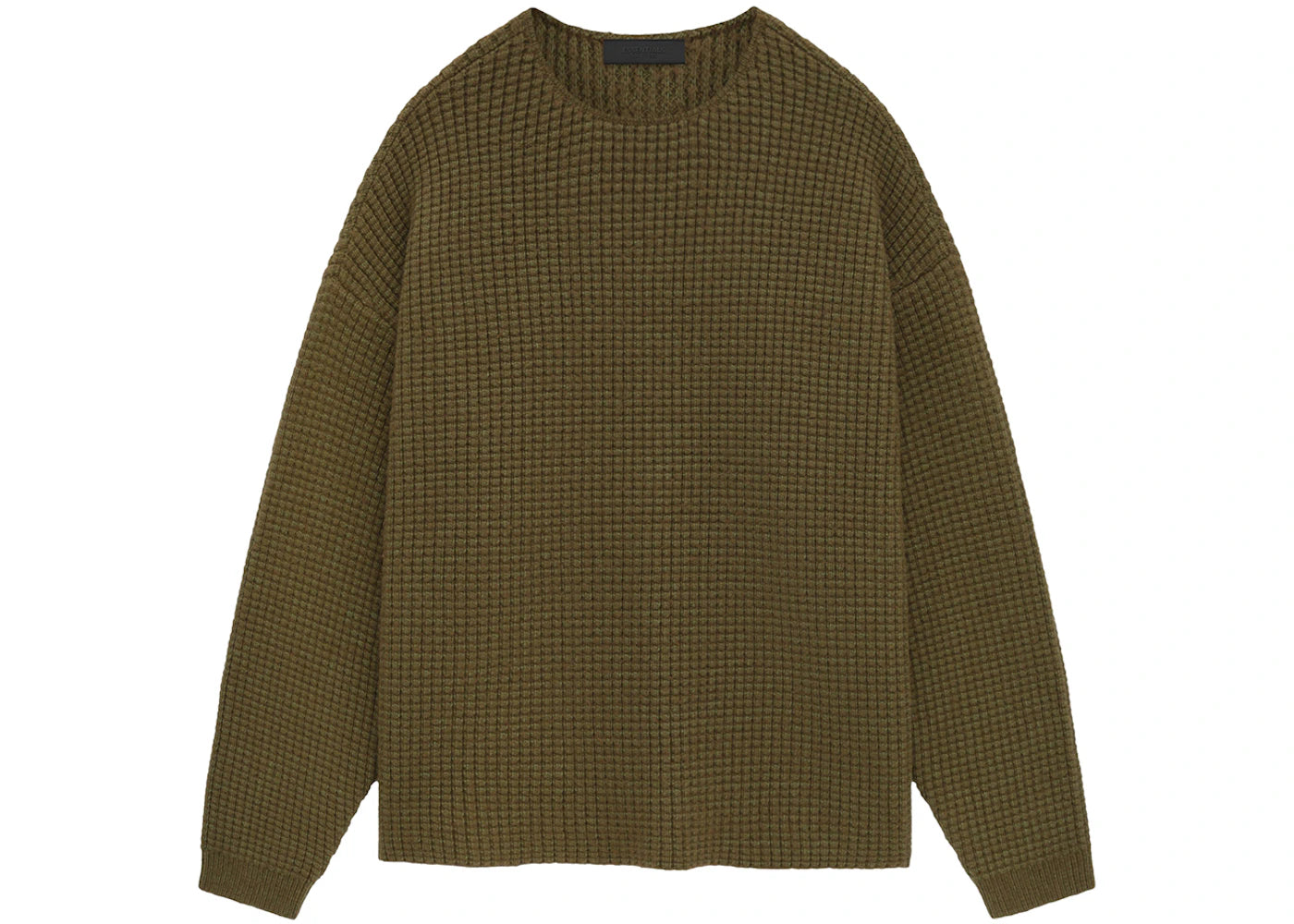 The Fear of God Essentials Heavy Waffle Crewneck Sweater Olive is now available at Side Kicks!