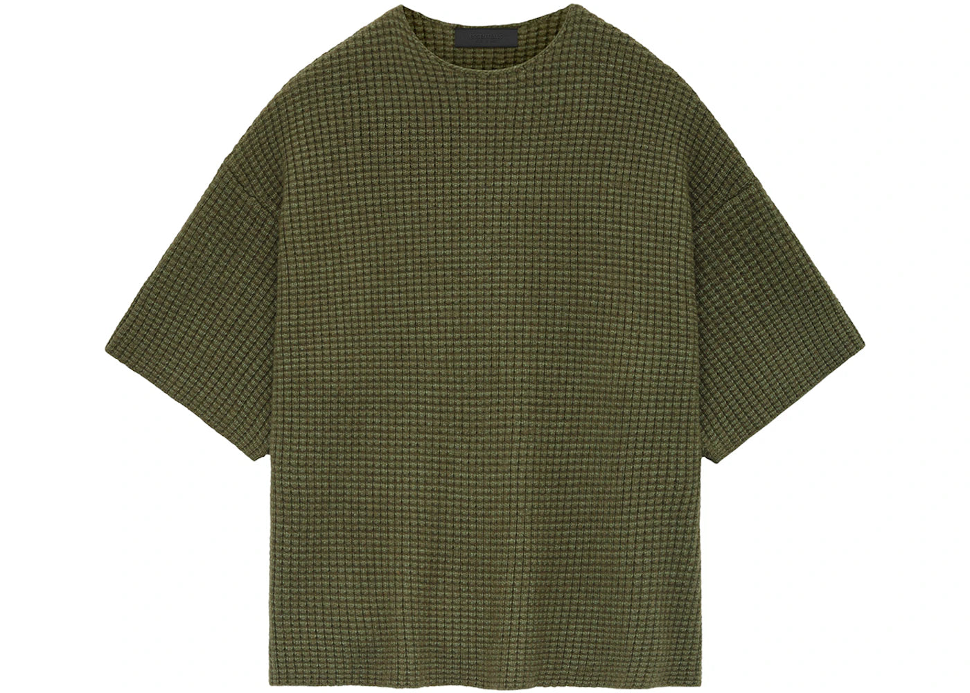 The Fear of God Essentials Heavy Waffle Short Sleeve Crewneck Sweater Military is now available at Side Kicks!