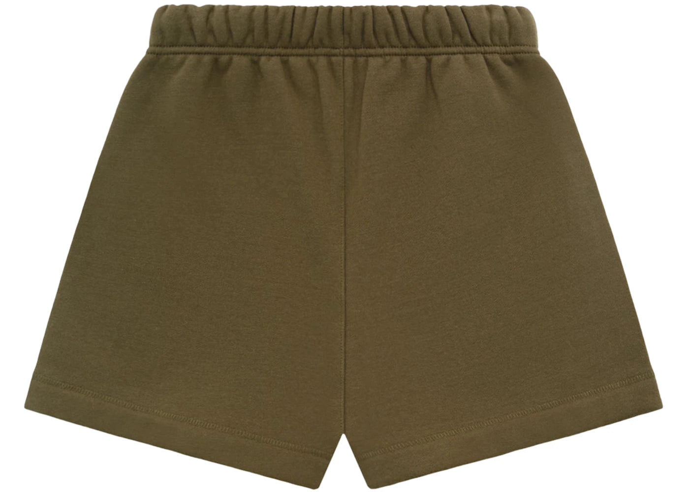 The Fear of God Essentials Kids Fleece Soccer Short Olive is now available at Side Kicks!