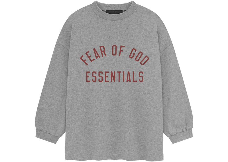 The Fear of God Essentials Kids Jersey Long Sleeve Tee Dark Heather is now available at Side Kicks!