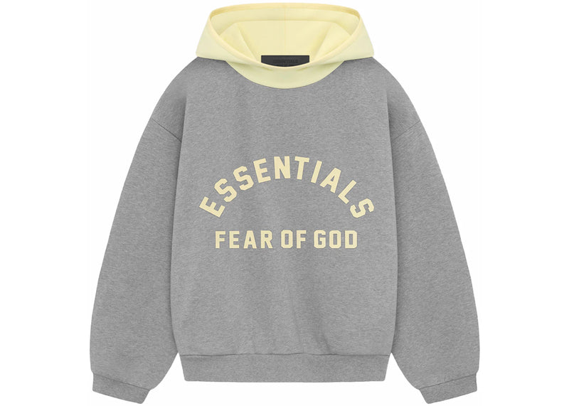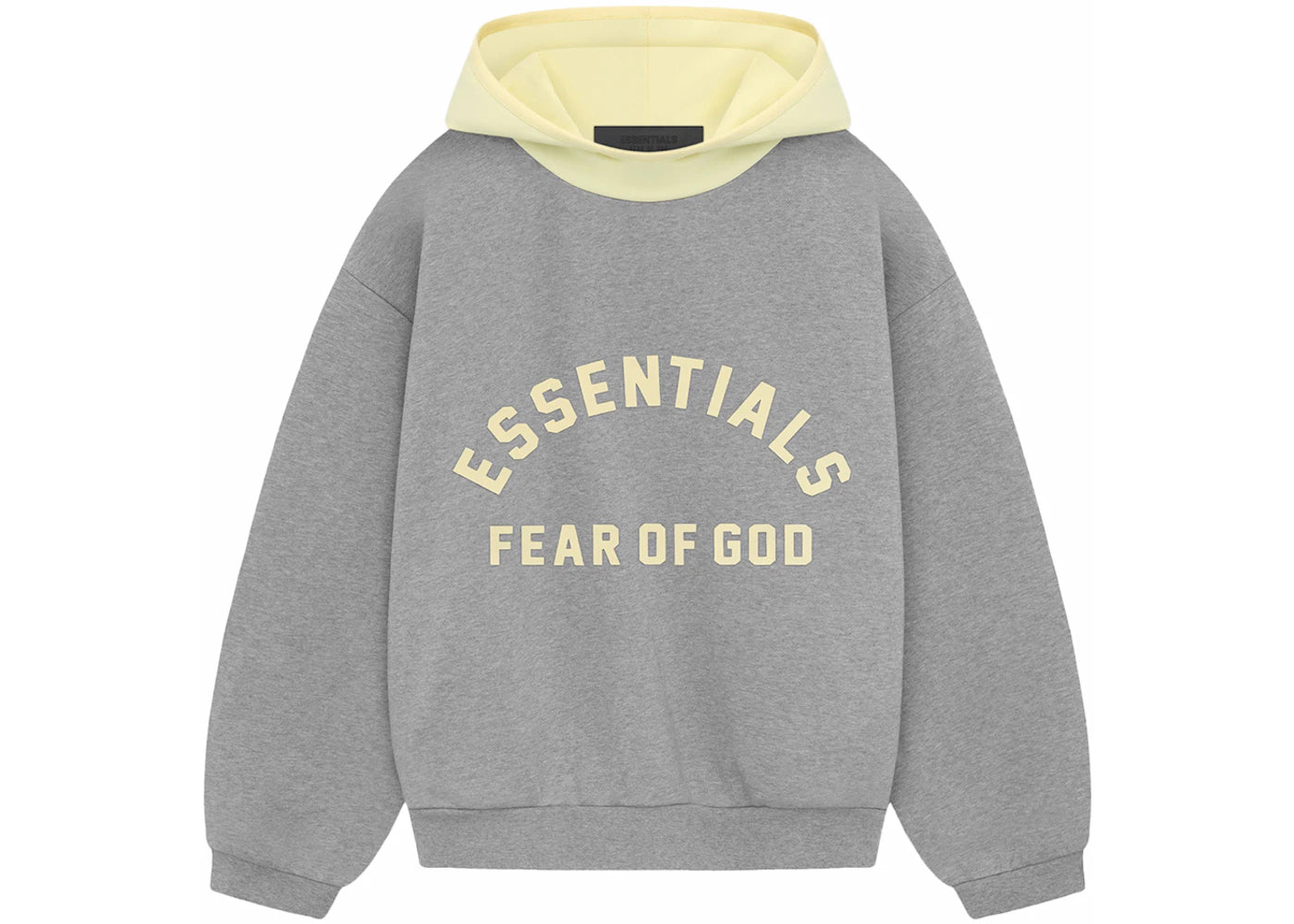 The Fear of God Essentials Kids Nylon Fleece Hoodie Dark Heather Oatmeal/Garden Yellow is now available at Side Kicks!