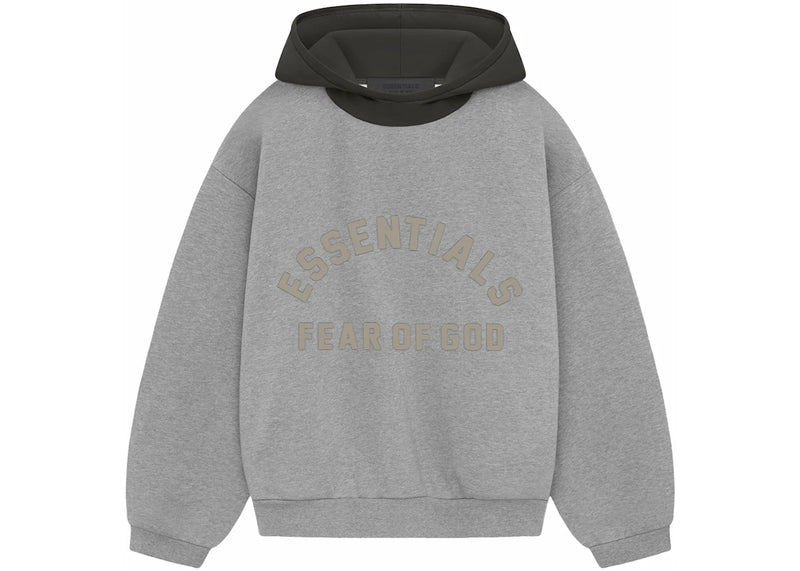 The Fear of God Essentials Kids Nylon Fleece Hoodie Dark Heather Oatmeal/Ink is now available at Side Kicks!