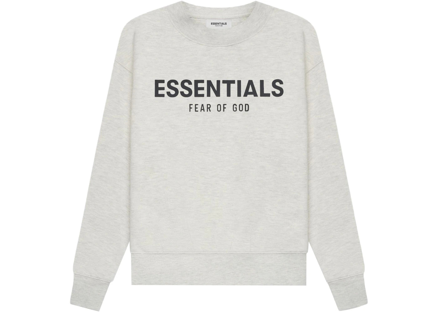 The Fear of God Essentials Kids Pull-Over Crewneck Oatmeal Heather/Light Heather Oatmeal is now available at Side Kicks!