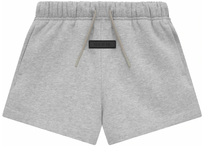 The Fear of God Essentials Kids Running Short Light Heather Grey is now available at Side Kicks!
