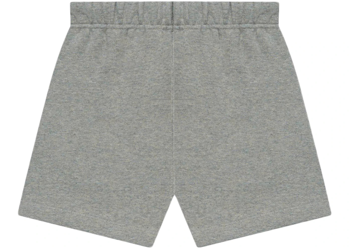 The Fear of God Essentials Kids Sweatshorts in Heather Oatmeal/Dark Oatmeal come in sizes 4 to 16, fitting toddlers to pre-teens. Made from 80% cotton and 20% viscose, they feature an Essentials Fear of God logo on the front center and left leg. Founded by Jerry Lorenzo in 2016, the brand was renamed Fear of God Essentials in 2018. Released on [date], the Fear of God Essentials Kids Sweatshorts are available now at Side Kicks.