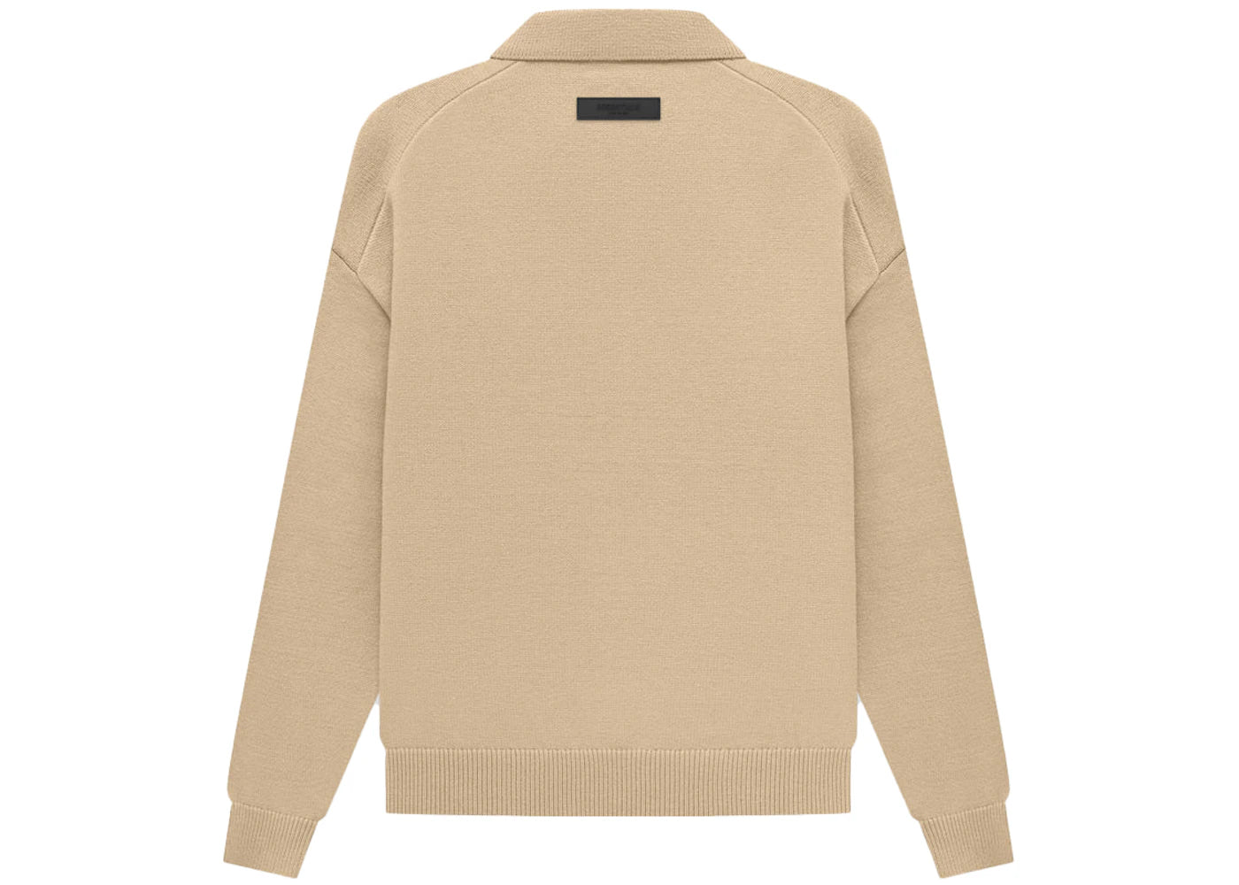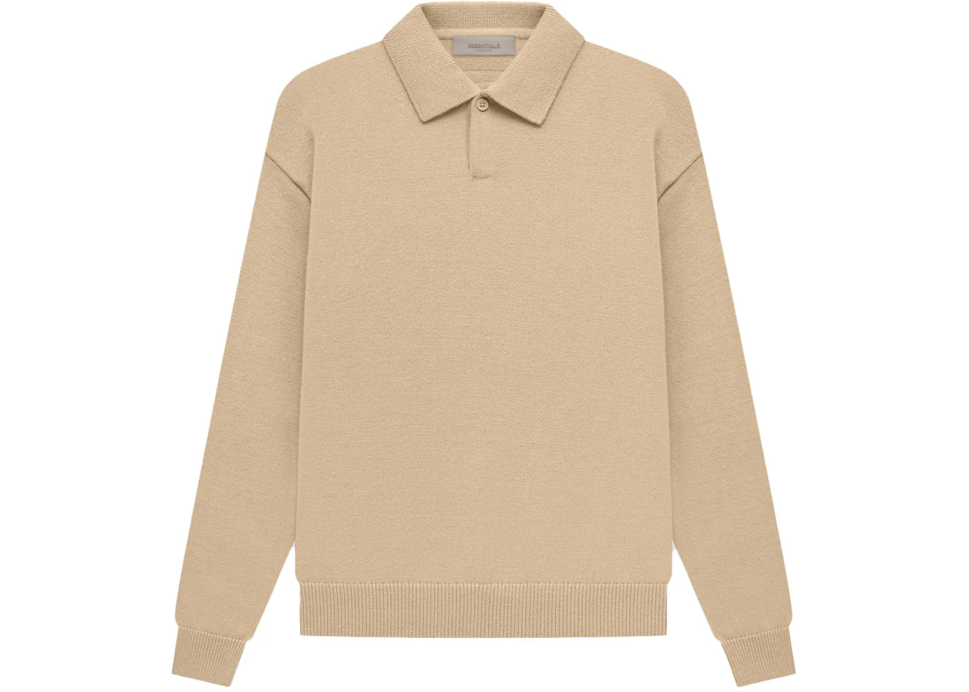 The Fear of God Essentials Knit LS Polo Sand is now available at Side Kicks!
