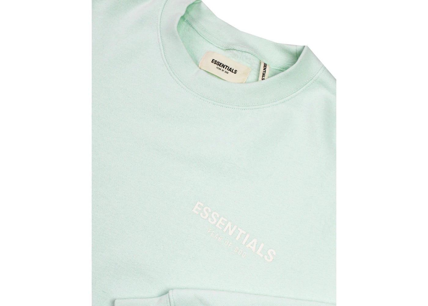 The Fear of God Essentials Logo Pullover Sweatshirt Mint/White is now available at Side Kicks!