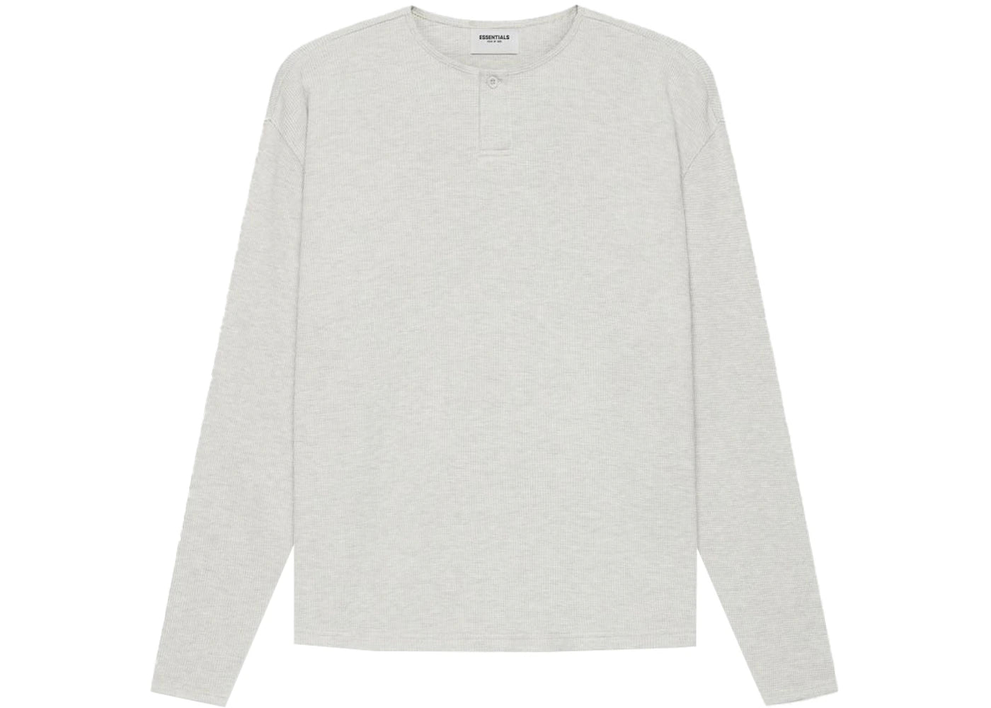 The Fear of God Essentials Long Sleeve Thermal Henley Light Heather Oatmeal is now available at Side Kicks!