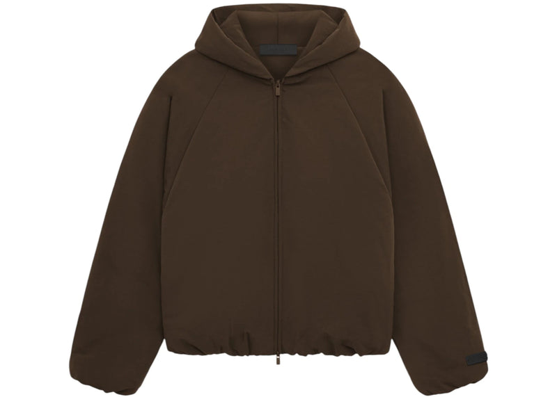 The Fear of God Essentials Military Nylon Hooded Bomber Brown is now available at Side Kicks!