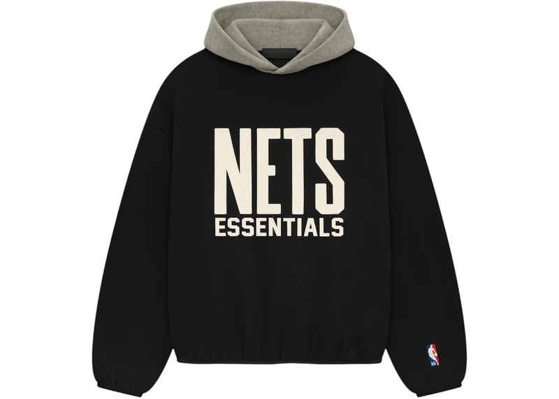The Fear of God Essentials Nets Hoodie Black/Warm Heather is now available at Side Kicks!
