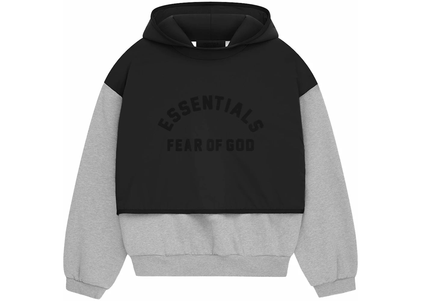 The Fear of God Essentials Nylon Fleece Hooded Sweater Light Heather Grey/Jet Black is now available at Side Kicks!