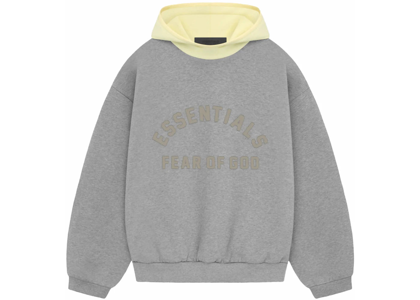 The Fear of God Essentials Nylon Fleece Hoodie Dark Heather Oatmeal/Garden Yellow is now available at Side Kicks!