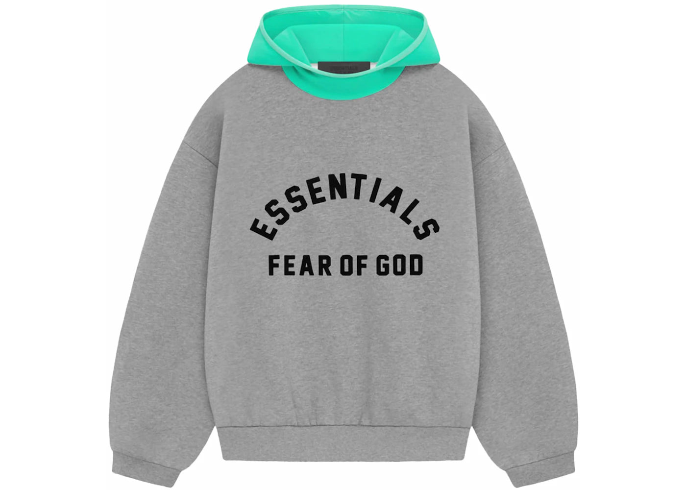 The Fear of God Essentials Nylon Fleece Hoodie Dark Heather Oatmeal/Mint Leaf is now available at Side Kicks!
