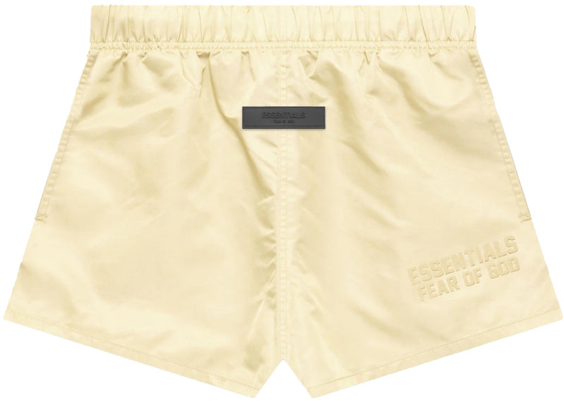 The Fear of God Essentials Nylon Running Shorts Canary is now available at Side Kicks!