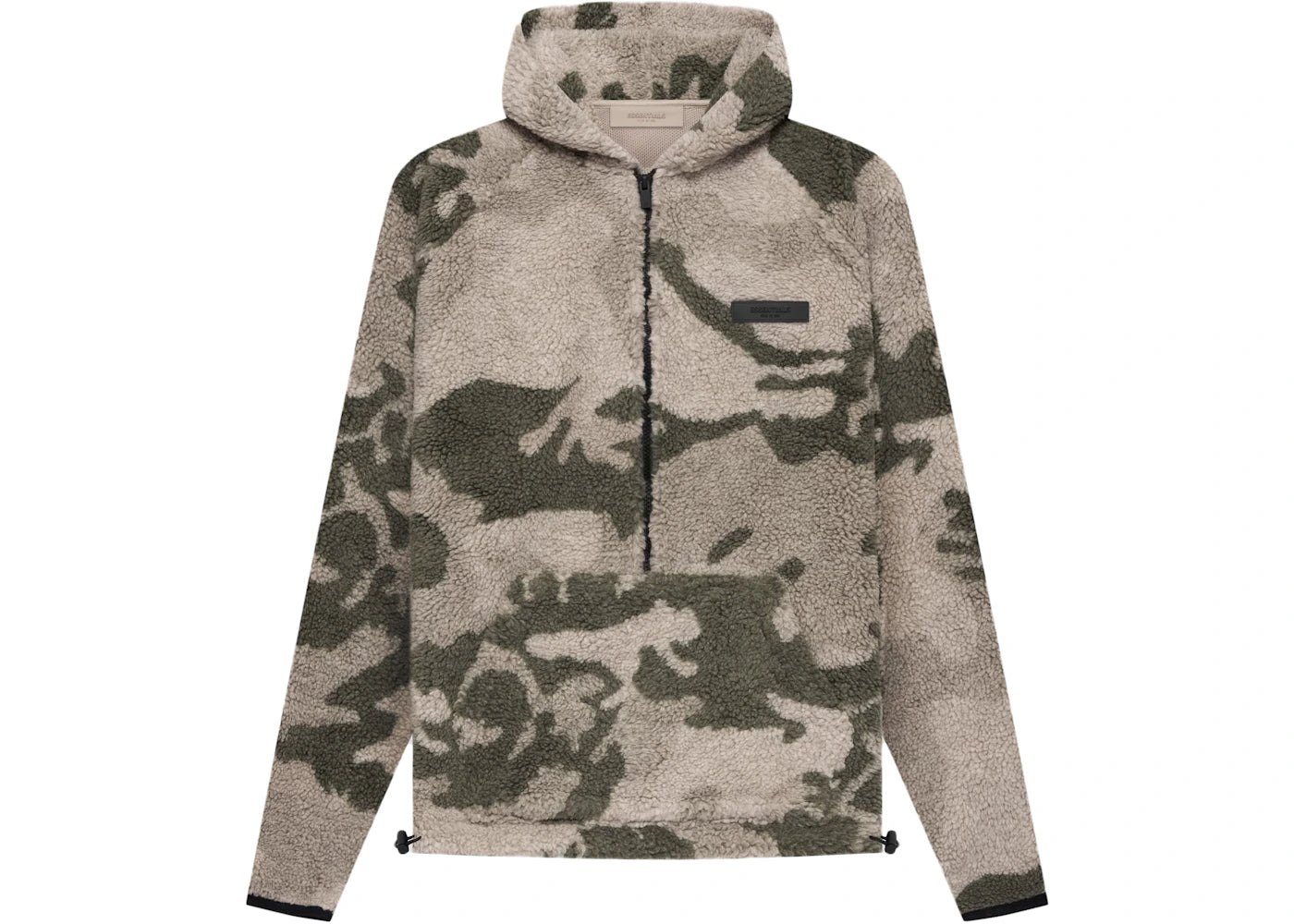 The Fear of God Essentials Polar Fleece Half Zip Hoodie Camo is now available at Side Kicks!
