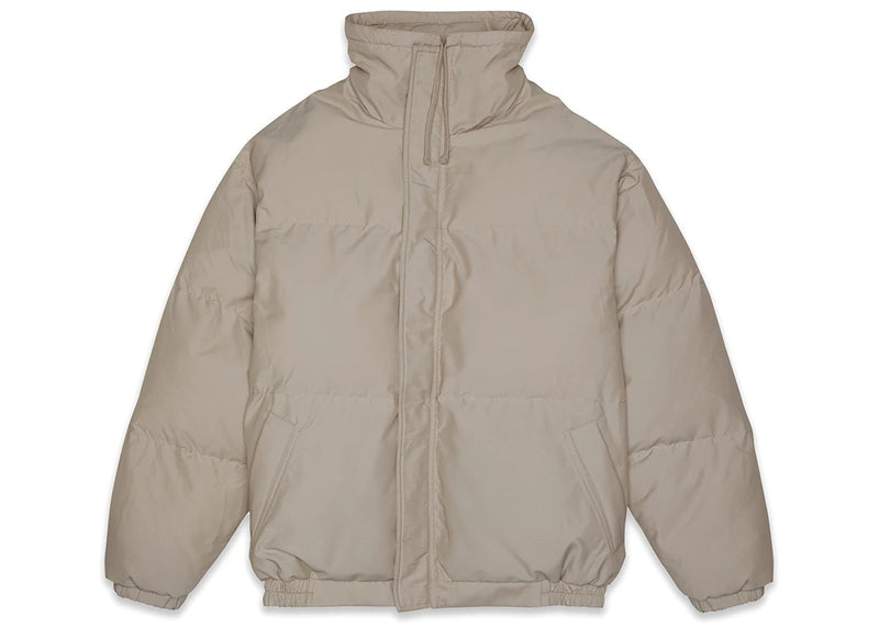 The Fear of God Essentials Puffer Jacket Taupe is now available at Side Kicks!
