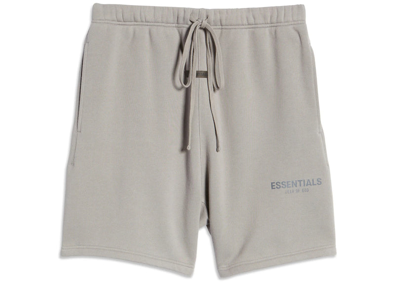 The Fear of God Essentials Sweatshort Cement/Pebble is now available at Side Kicks!