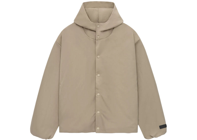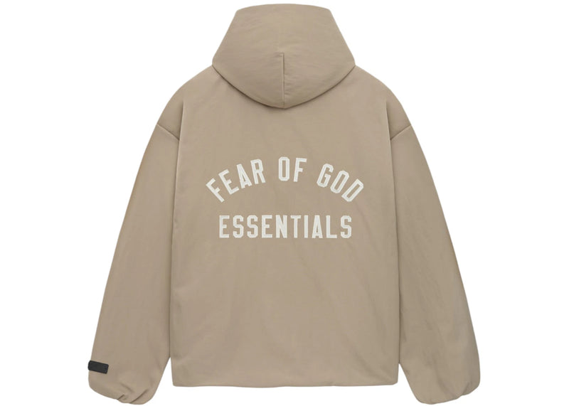 The Fear of God Essentials Textured Nylon Hooded Coaches Jacket Desert Sand is now available at Side Kicks!