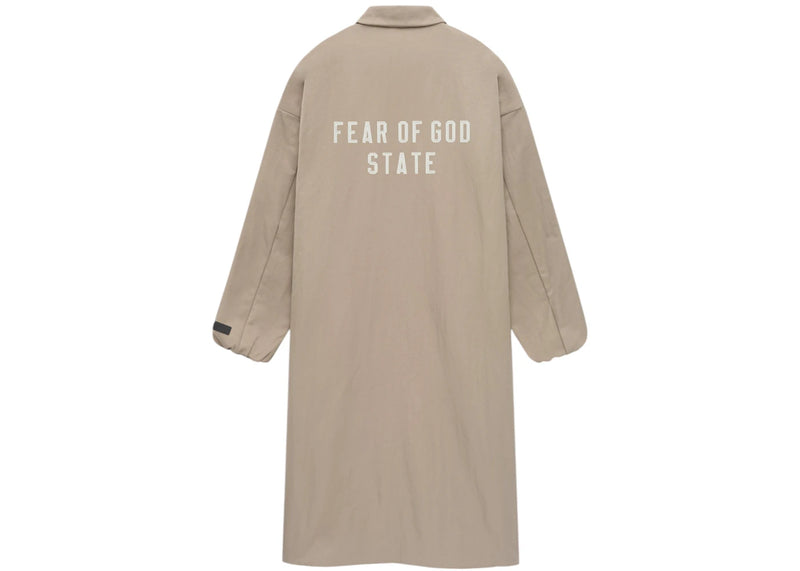 The Fear of God Essentials Textured Nylon Trench Desert Sand is now available at Side Kicks!