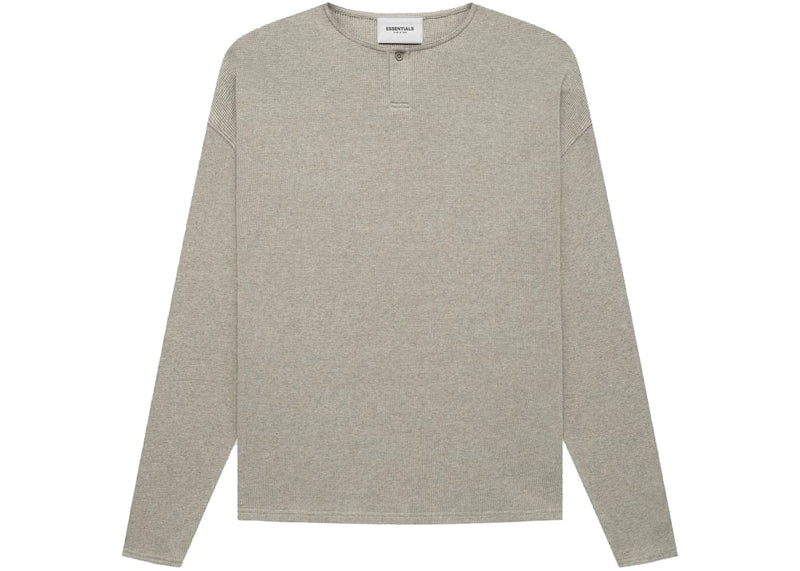 The Fear of God Essentials Thermal L/S Henley Heather is now available at Side Kicks!