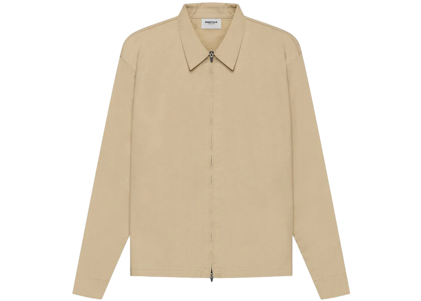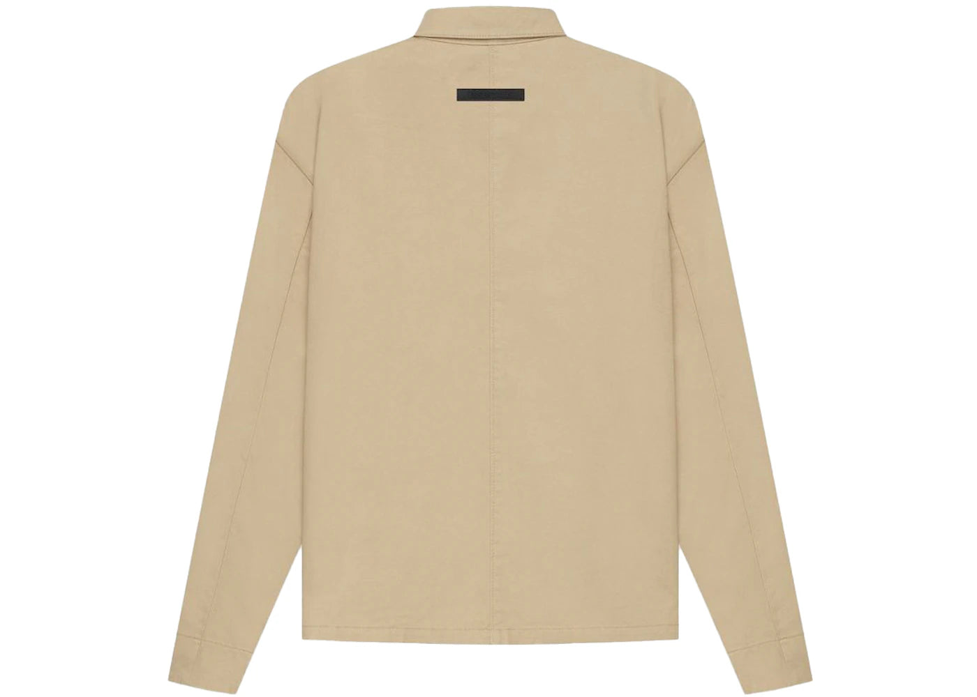 The Fear of God Essentials Twill Shacket Khaki is now available at Side Kicks!