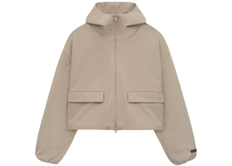 The Fear of God Essentials Women's Bonded Nylon Hooded Anorak Desert Sand is now available at Side Kicks!