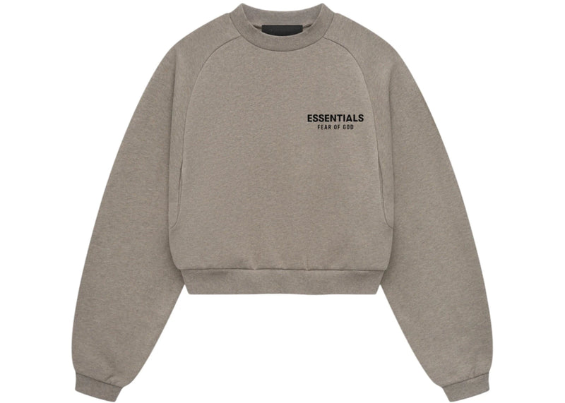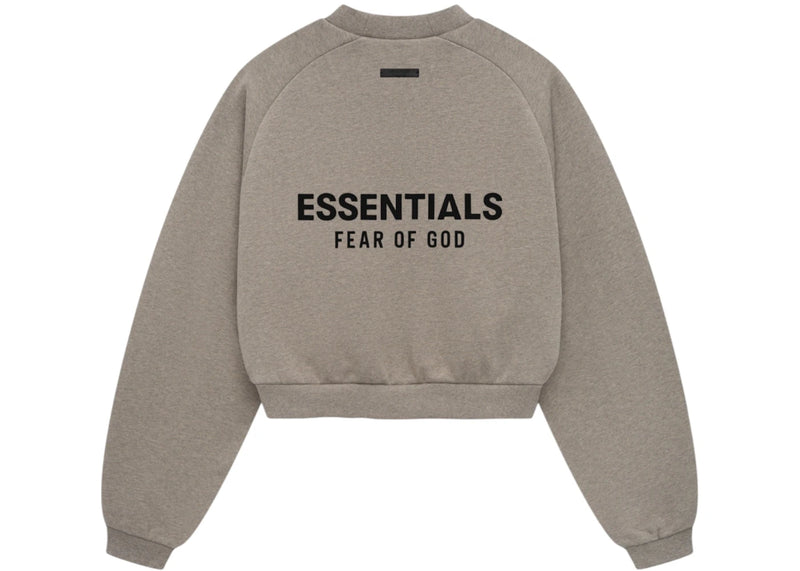 The Fear of God Essentials Women's Fleece Cropped Crewneck Heather Gray is now available at Side Kicks!