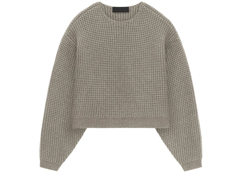 The Fear of God Essentials Women's Heavy Waffle Cropped Sweater Heather Gray is now available at Side Kicks!