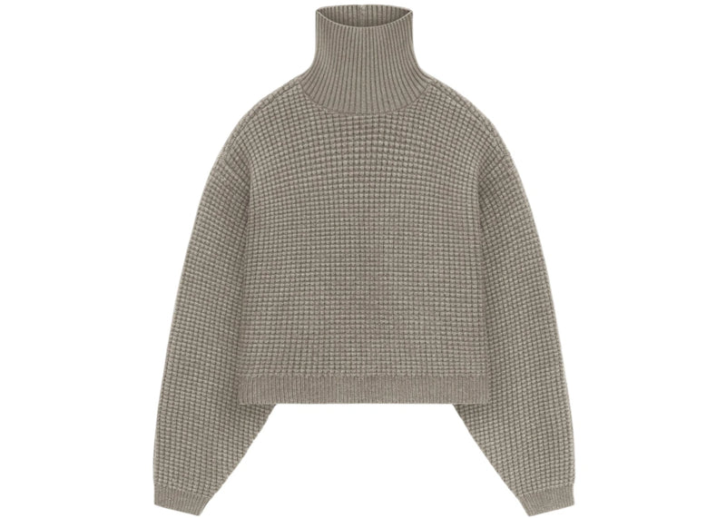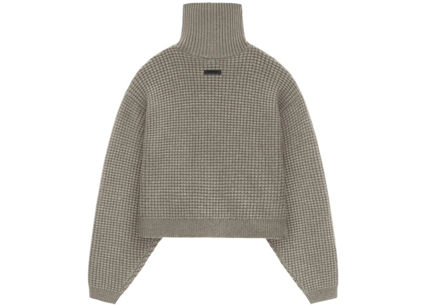 The Fear of God Essentials Women's Heavy Waffle Cropped Turtleneck Heather Gray is now available at Side Kicks!